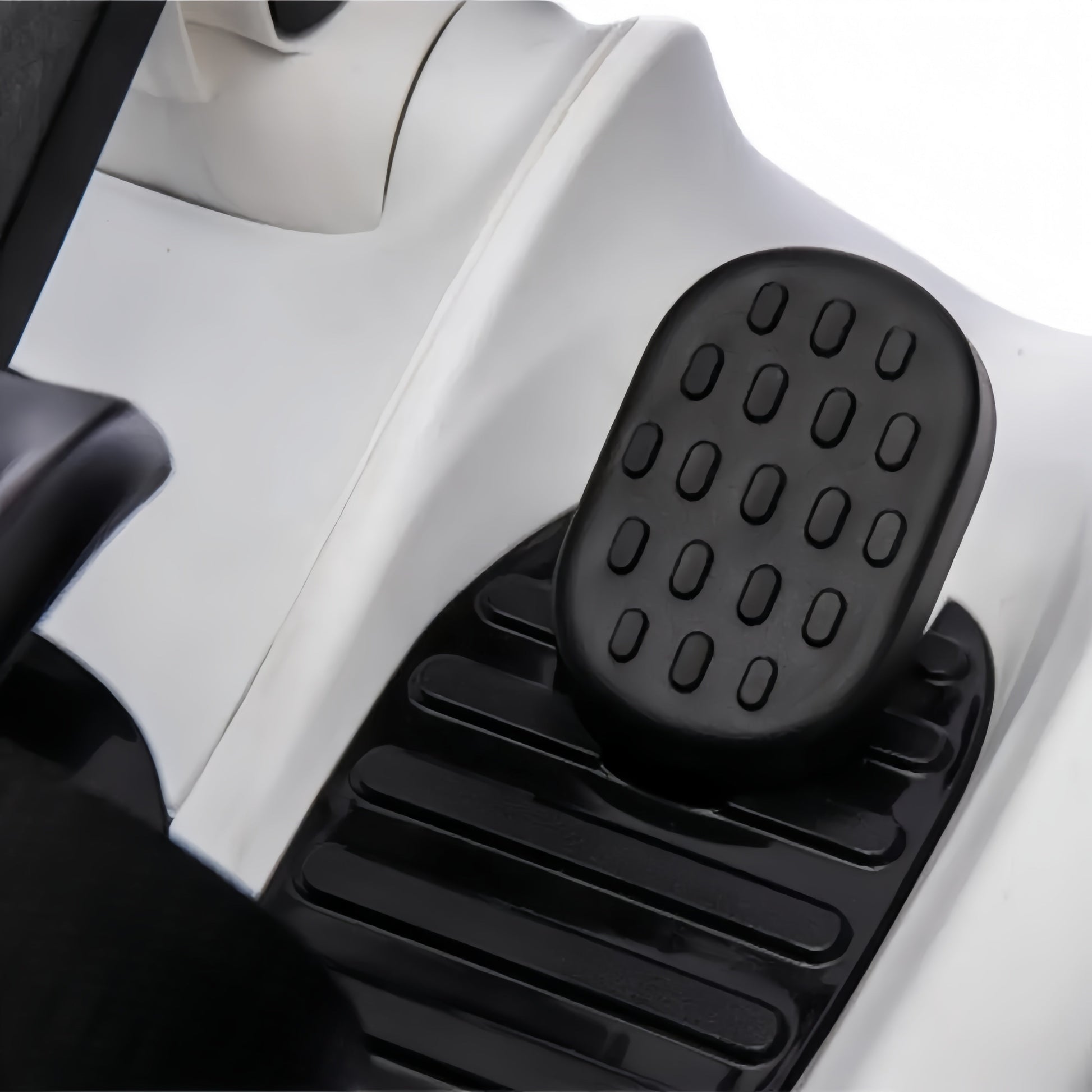 User-Friendly Controls: Power button and pedal start the car moving forward; steering wheel provides easy directional control. Horn and engine sounds enhance the driving experience.